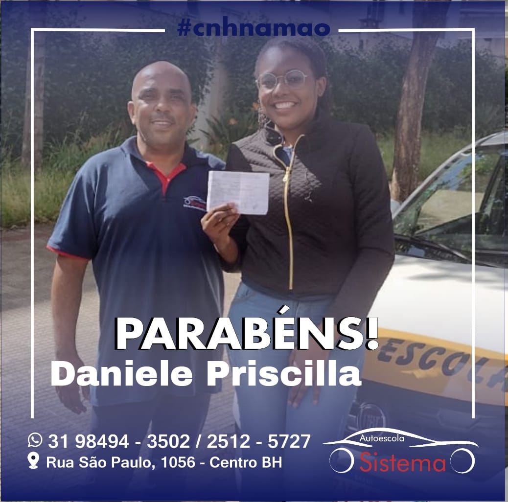 Gostaria de agradecer a todos da autoescola sistema, mas em especial ao instrutor Washington, por todo ensinamento, persistência, paciência, boa vontade, educação e simpatia desde primeira aula. E as meninas da recepção, Manu e Dani, por toda atenção e carinho comigo. Muito feliz com essa aprovação! Obrigada!