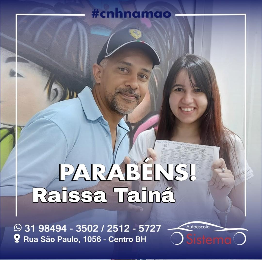 Grata a vocês por tudo! Por toda atenção, desde o início. E agradeço também ao Rafael. Ele sempre foi muito atencioso, paciente e dedicado comigo. Nunca reclamou de ter que me ensinar as mesmas coisas mil vezes (kkkkkk). Indico muito a Autoescola Sistema! Obrigada por tudo!