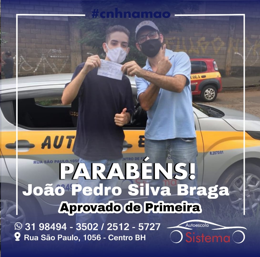 Oi, aqui é o João Pedro, aluno do Rafael , na Autoescola Sistema. Eu acabei de passar no exame prático e queria elogiar o Rafael, graças às aulas dele, a paciência, a dedicação, o carinho e o profissionalismo eu consegui passar! Com certeza sem as aulas dele, seria muito mais difícil. Obrigado e abraço a todos!
