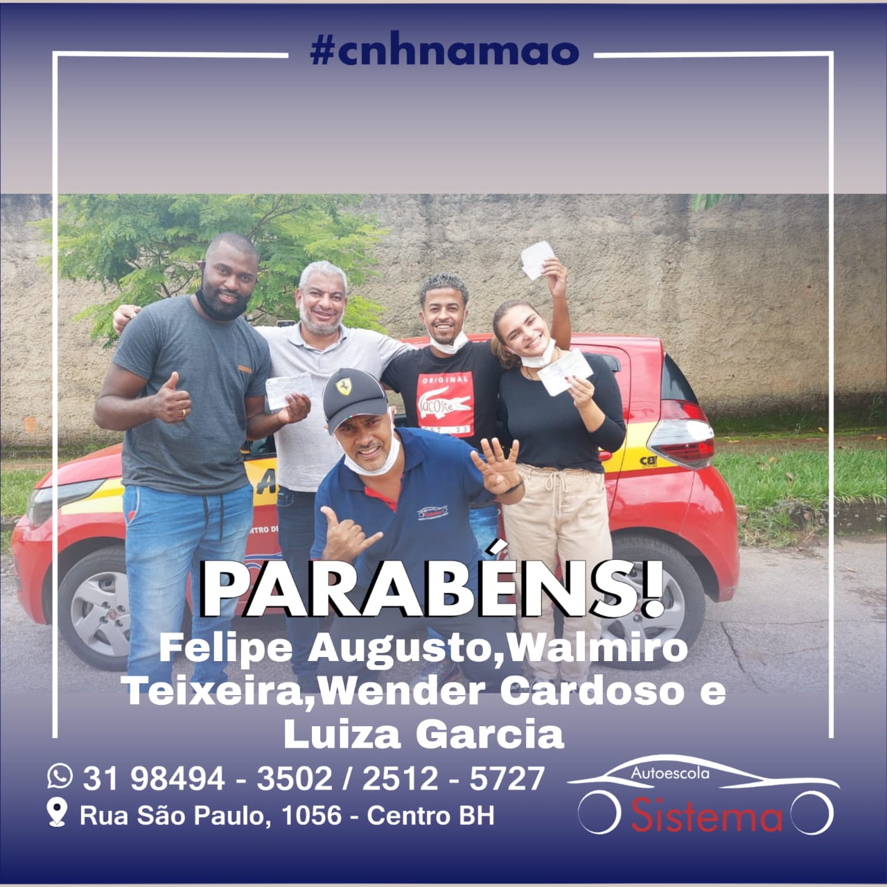 Olá! Sou o *Walmiro Muzzi*, estou passando aqui pra agradecer a equipe Sistema em especial a Manu, Dani, Ercilio e ao meu instrutor Washington que foi super profissional e competente em todo o meu processo da Habilitação. Estou Habilitado e super agradecido por tudo nesse novo sonho realizado. Passei na 6ª tentativa e digo pra vocês: Nunca desistam! *Obs: Instrutor Washington super indico Top Top Top! Parabéns pelo seu trabalho*.
